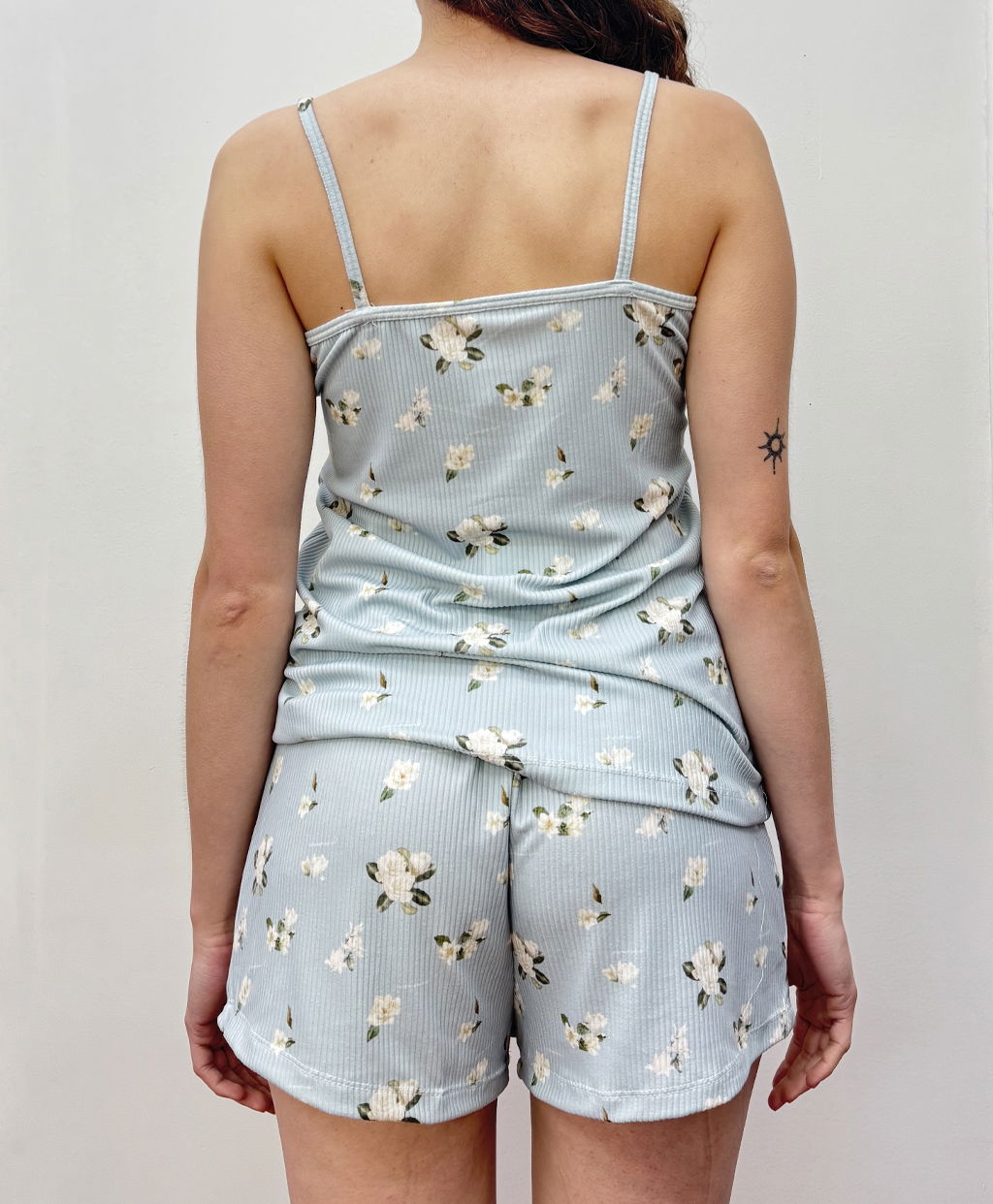 Pijama de morley, remera musculosa , y short con cintura elastizada.